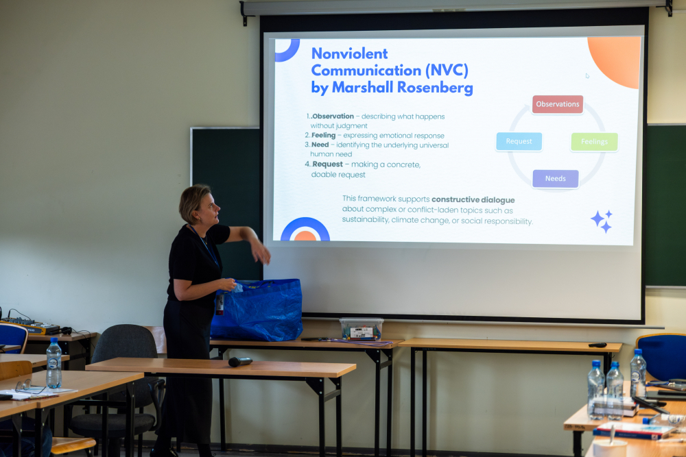 Na zakończenie części panelowej uczestnicy wzięli udział w warsztacie: „Komunikacja bez przemocy. Jak rozmawiać o zrównoważonym rozwoju?”, który poprowadziła dr Agata Rudnik z Instytutu Psychologii Uniwersytetu Gdańskiego.