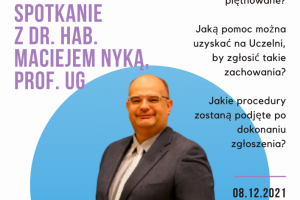 Spotkanie zZastępcą Rzecznika ds. Równego Traktowania i Przeciwdziałania Mobbingowi w zakresie spraw studentów i doktorantówdr. hab. Maciejem Nyką, prof. UG